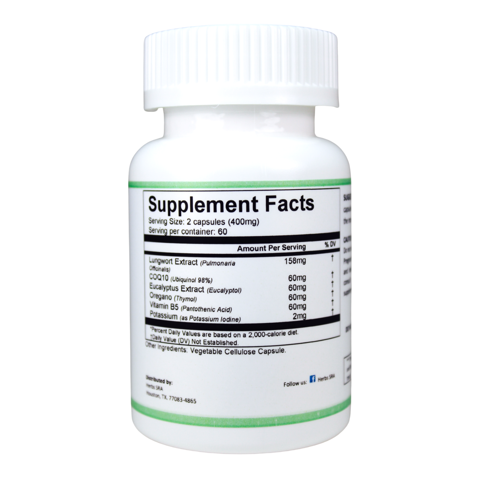 Support your lungs and overall vitality with a potent blend of natural ingredients. Lungwort and Eucalyptus help open the airways and soothe the respiratory tract, while Oregano provides powerful antimicrobial support. CoQ10 fuels cellular energy and heart-lung function, and Vitamin B5 promotes adrenal and immune health.