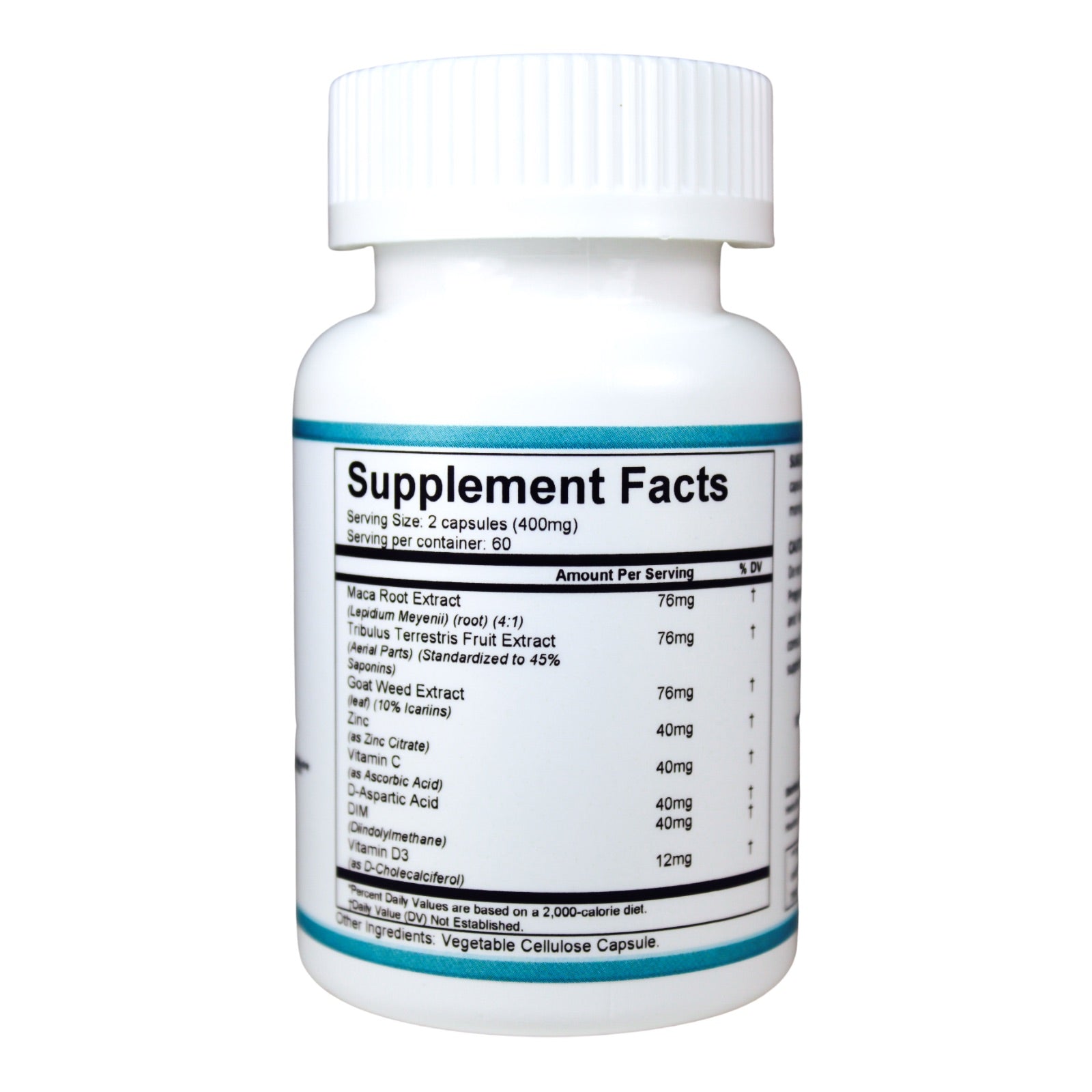 Unleash your potential with a powerful formula designed to support natural testosterone levels and male vitality. Featuring Maca, Tribulus Terrestris, and Horny Goat Weed to help stimulate hormonal balance and performance, plus D-Aspartic Acid—a key amino acid shown to boost testosterone synthesis. Fortified with Zinc, Vitamin C, Vitamin D3, and DIM to promote hormonal regulation and overall strength.