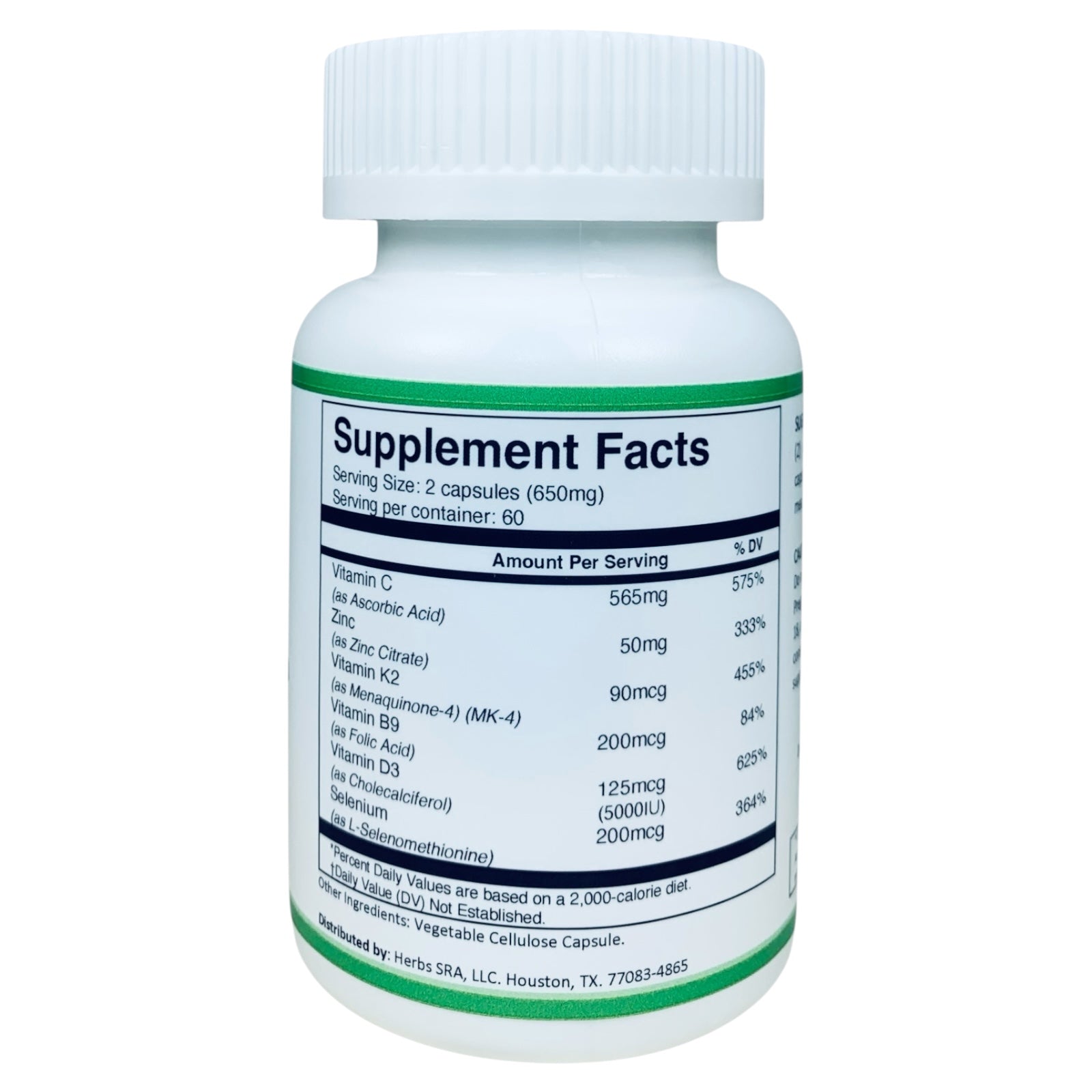 VITAMINS C,D3,K2,B9, AND MINERALS ZINC AND SELENIUM